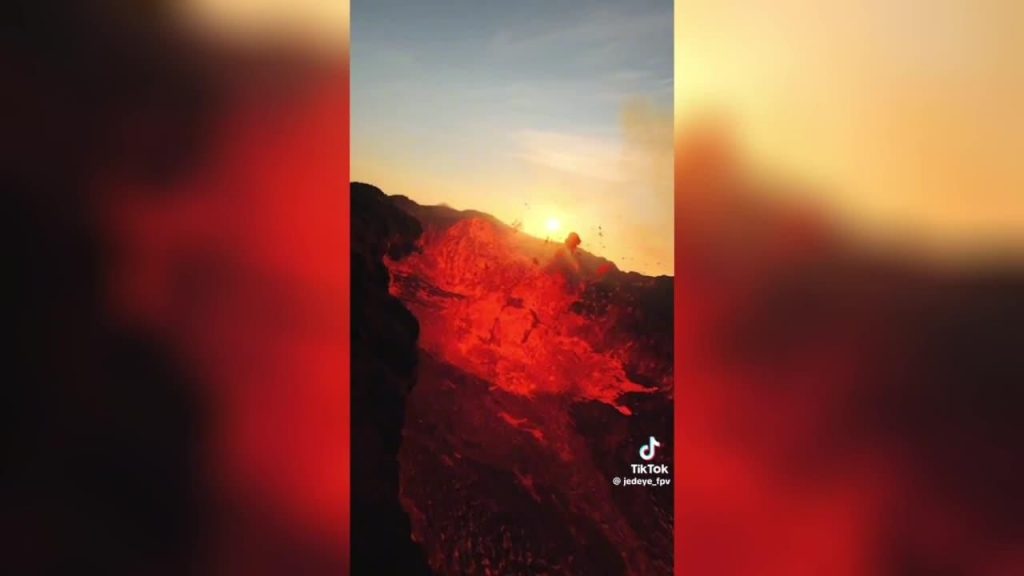 Vietnes “TikTok” lietotājs, profesionāls drona pilots publicējis unikālu skatu uz vulkāna izvirdumu, kas nedēļas sākumā izcēlās Islandē uz dienvidiem no galvaspilsētas Reikjavīkas.