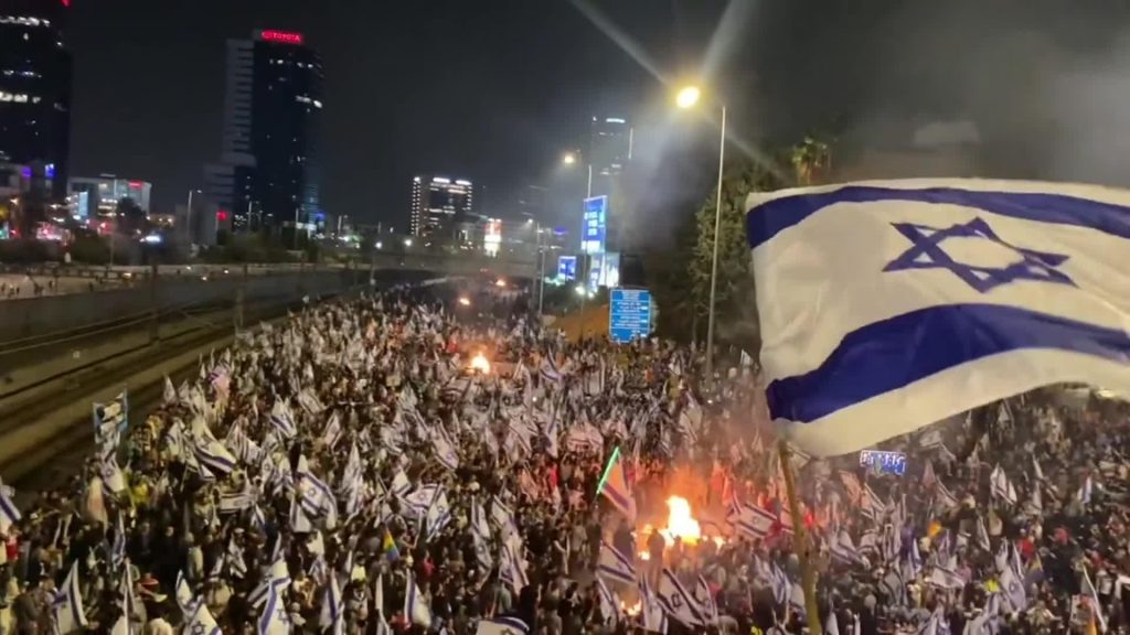 Pēc tam, kad Izraēlas premjerministrs Benjamins Netanjahu no amata atcēla aizsardzības ministru Joavu Galantu, kurš aicināja valdību apturēt pretrunīgi vērtētās tiesu sistēmas reformas, Telavivā svētdienas vakarā izcēlās masu protesti.
