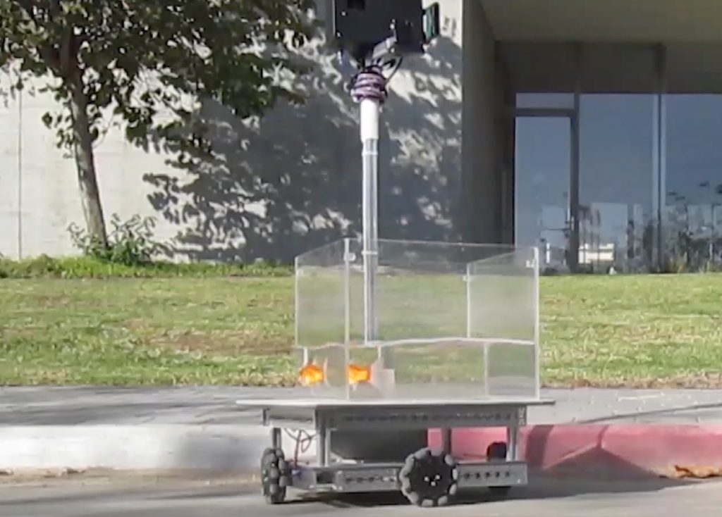 Pētnieki izveidoja robotizētu mašīnu, kas sastāv no akvārija uz riteņiem, kam klāt piestiprināta kameru sistēma, kas fiksēja zivs veiktās kustības.