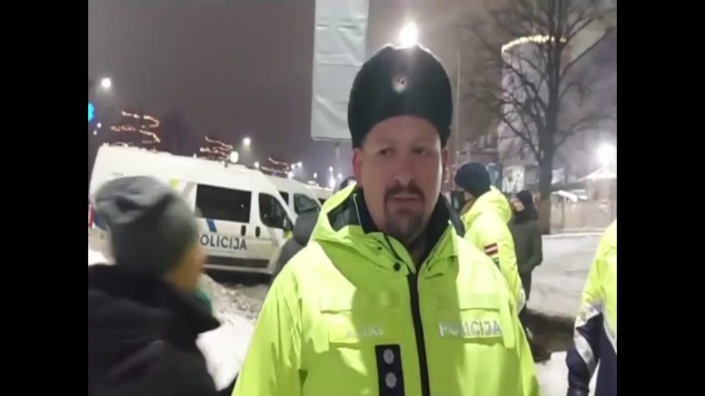 Video dzirdama tikai viena policijas priekšnieka izteikta frāze: “Ja celtnieks sāk Satversmi lasīt, tad arī rodas interpretācijas, kā jūs izprotat to!”