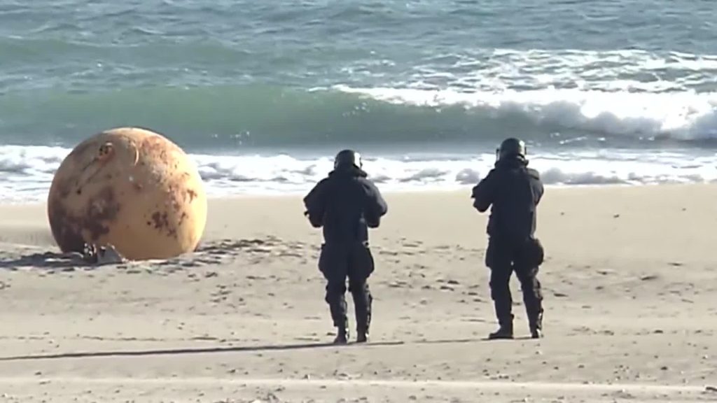 VIDEO. Japānas pludmalē izskalota neparasta, lielizmēra metāla bumba 19
