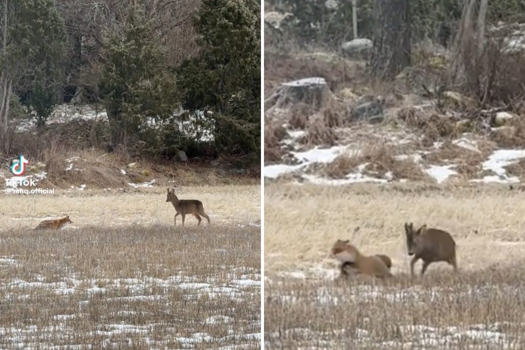 Jaunais buks, iespējams, tikai pārbaudīja robežas vai demonstrēja dominējošo stāvokli, bet lapsa zināja labāk, ka nevajag iesaistīties “cīņā”.