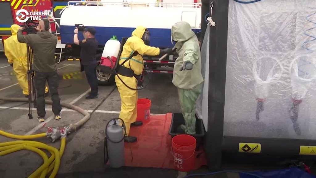 Radiācijas dekontaminācijas punkti ir uzstādīti visā pilsētā. “Mēs plānojam izveidot trīs šādas stacijas. Kopā ir 23 savākšanas punkti, kur cilvēki nonāktu no piesārņotajām vietām. Tad viņi tiktu pārvietoti uz šiem punktiem un pēc tam viņi tiktu evakuēti,” stāsta Vladislavs Gusinskis no Ukrainas Valsts neatliekamās palīdzības dienesta.