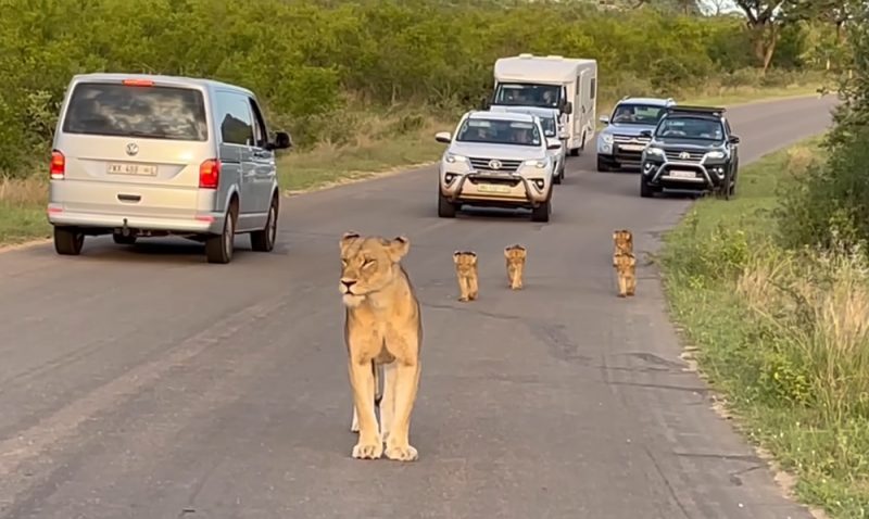 VIDEO. Kad lauvu ģimenīte šķērso ceļu, tad nīkšana auto sastrēgumā vairs nav problēma…! 16