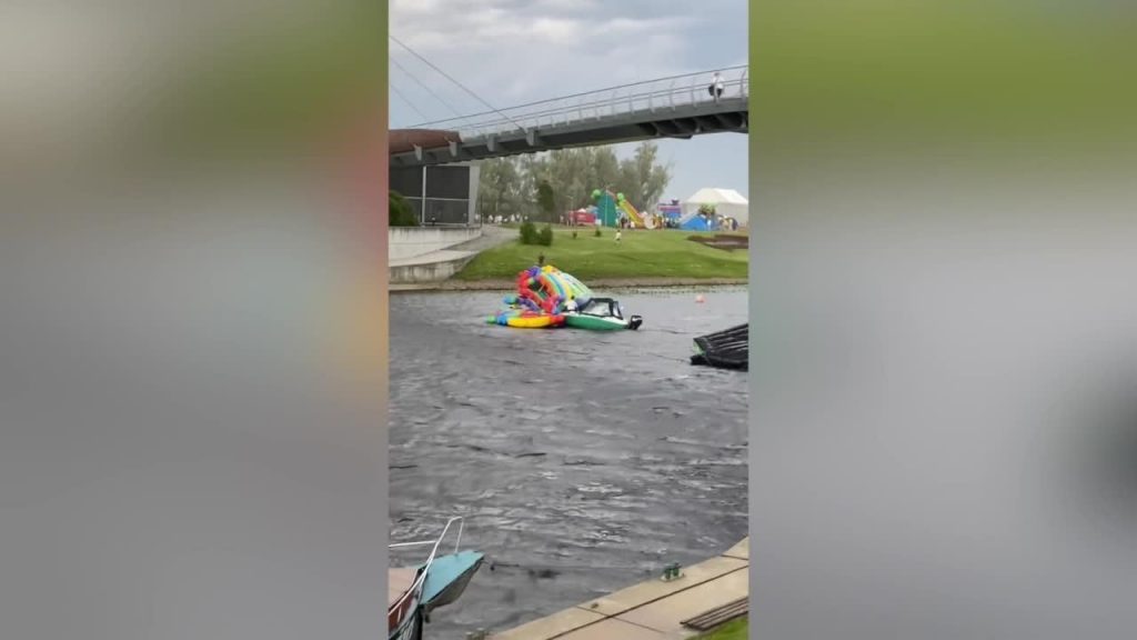 VIDEO. Kāds noslinkojis ar piestiprināšanu… Jelgavā upē iepūstas bērnu piepūšamās atrakcijas 4