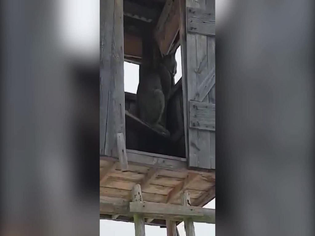 Sociālajos tīklos popularitāti guvis video, kurā iemūžināts lūsis sēžam medību tornī un neliekoties ne zinis par mednieka aicinājumu to pamest.