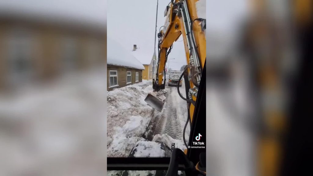 Vietnē “TikTok” video publicējis lietotājs ar vārdu reimoharma. Tajos redzams, kā ar ekskavatoru no ietvēm un ceļa tiek nošķūrēts sniegs.