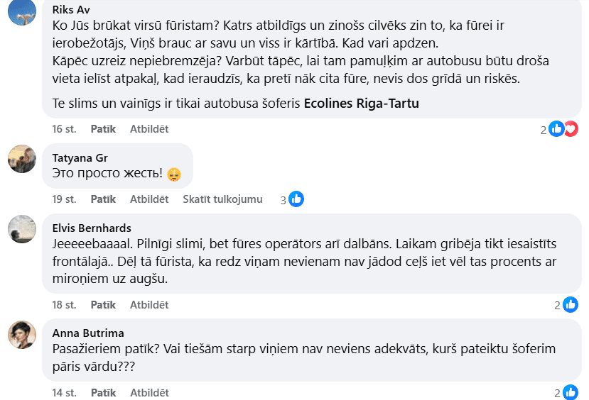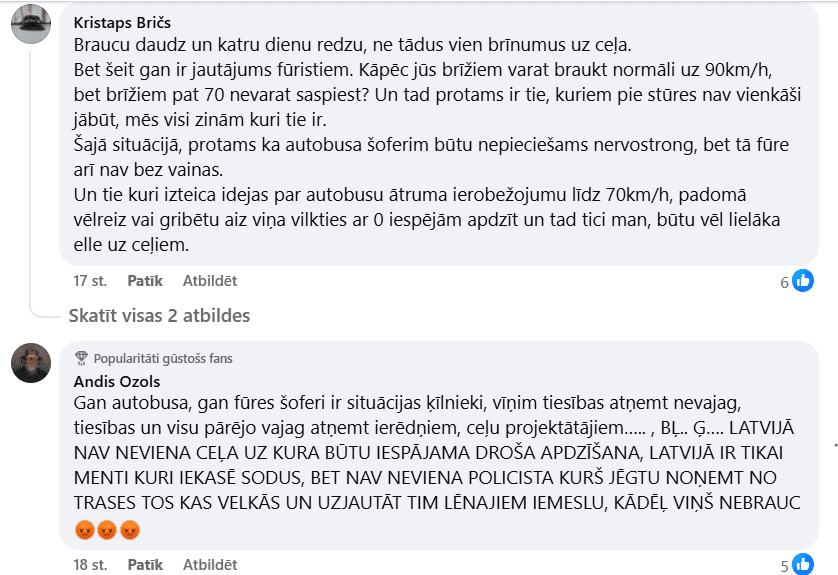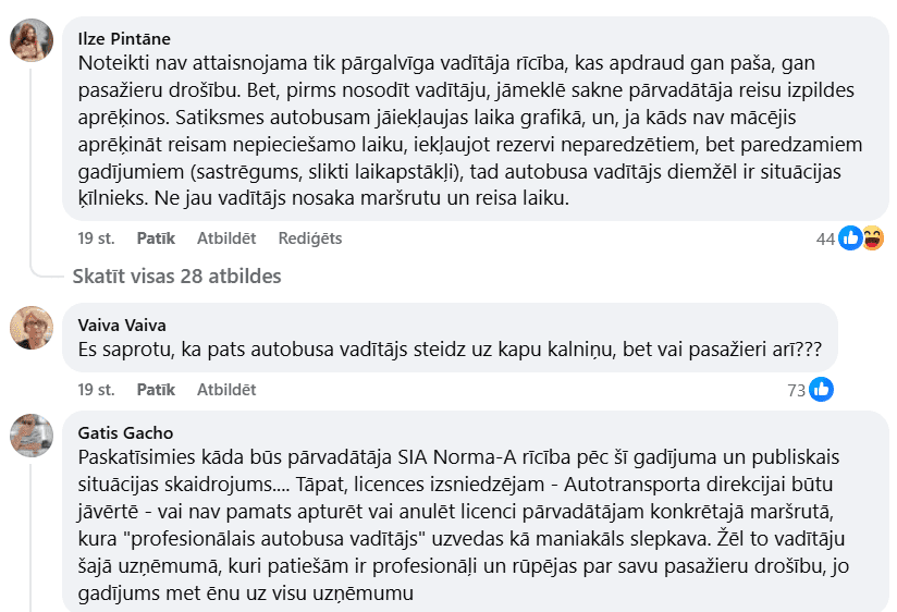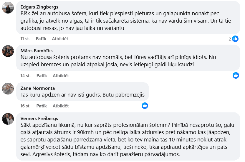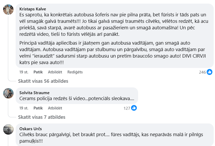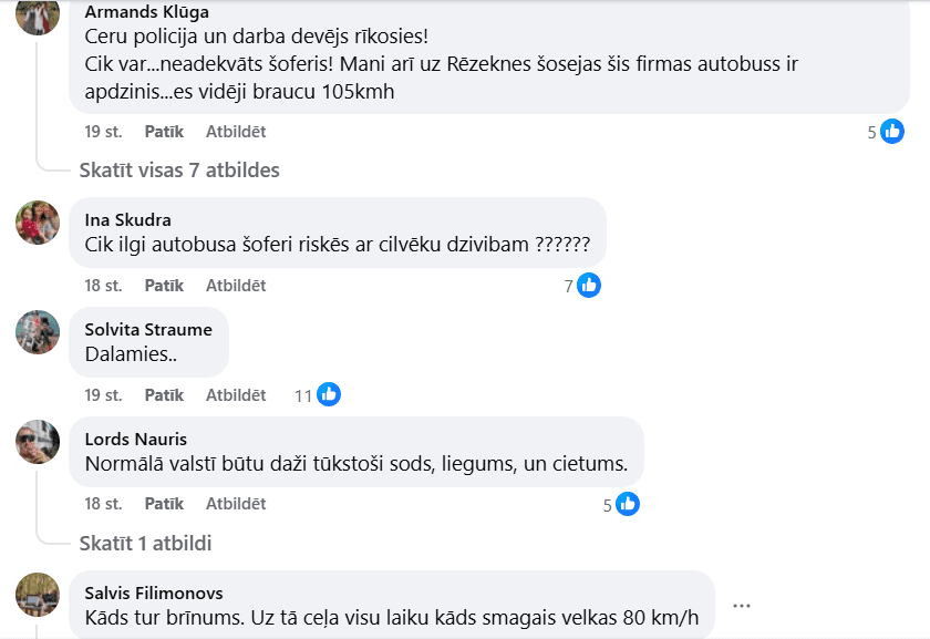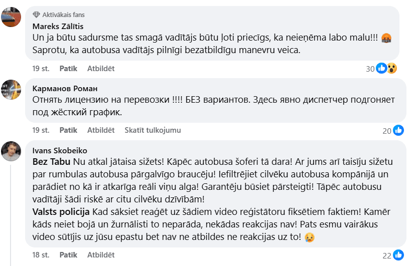 “Video redzams, kā autobuss veic bīstamu apdzīšanu, pretī braucot citam smagajam transportlīdzeklim. Šādas situācijas uz šosejas var beigties traģiski. Līdzīgas situācijas ar šī pārvadātāja autobusiem tiek fiksētas teju katru mēnesi, un tas liek jautāt — kad beidzot kāds iejauksies? Cik vēl šādu gadījumu paliek ārpus kameras, un vai tiešām jāgaida brīdis, kad notiks nelaime?” pamatoti jautā “Sadursme.lv” portālā šoferi.