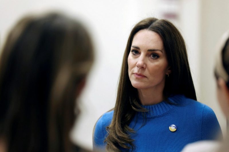 Apmeklējot šo centru, kas atrodas Londonā, hercogiene Keita Midltone bija izvēlējusies zilas krāsas džemperi un tumšus svārkus. Gan viņai, gan princim Viljamam piespraustas pie apģērba bija nozīmītes Ukrainas atbalstam.