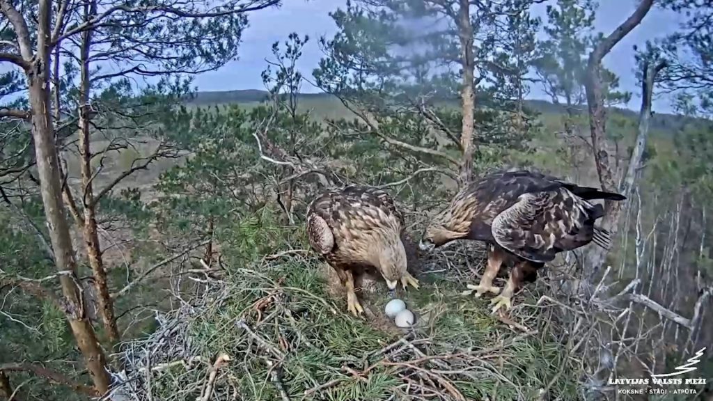 “Kaut arī parasti izaug tikai viens jaunais ērglis, ierasti tiek dētas divas olas. Dažkārt kāda no abām olām var nebūt apaugļota, tā var saplīst vai embrijs var iet bojā perēšanas laikā. Divu olu dējuma gadījumā ir lielāka iespēja sagaidīt sekmīgu ligzdošanu,” skaidro LVM vecākais vides eksperts, ornitologs Uģis Bergmanis.