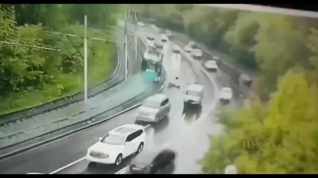 Sociālajos tīklos publicētajā video redzams, kā transportlīdzeklis lielā ātrumā izbrauc līkumu ar atvērtām durvīm, pa kurām uz blakus šosejas braucošu automašīnu priekšā izlido divi pasažieri, apmezdami vairākus kūleņus.