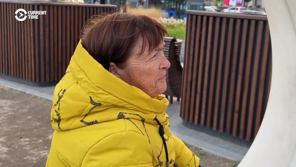 “Es domāju, ka bija tāda nepieciešamība,” šūpolēs sēdošā sieviete tic Krievijas Aizsardzības ministrijas paziņojumam, ka tas bijis plānots lēmums un situācija tiek kontrolēta.