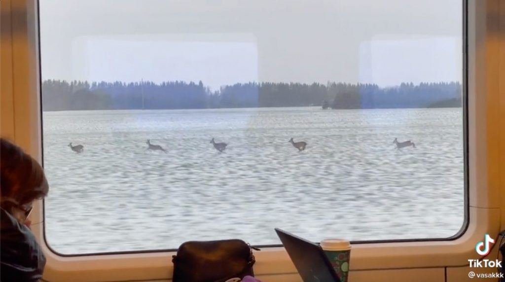 Sociālajā vietnē “TikTok” ievērību guvis video, kurā piecas stirnas sacenšanas ar braucošu vilcienu.