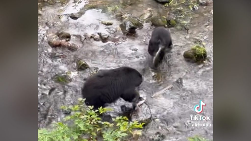 Kā redzams video, lāču mazulis noķēra zivi un lepni devās parādīt savu iegūto lomu mammai. Tomēr bija tikai viena problēma: lācēns neatpazina savu mammu un piegāja pie cita melnā lāča, kurš nekavējoties metās virsū mazajam lācēnam, radot diezgan biedējošu mirkli.