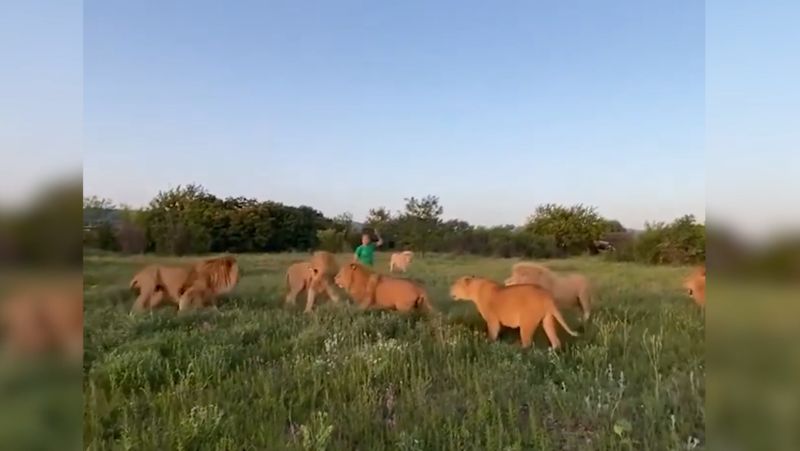 VIDEO. Lauvu kopējs ar kurpi rokā izšķir nepaklausīgu lauvu tēviņu cīņu 10