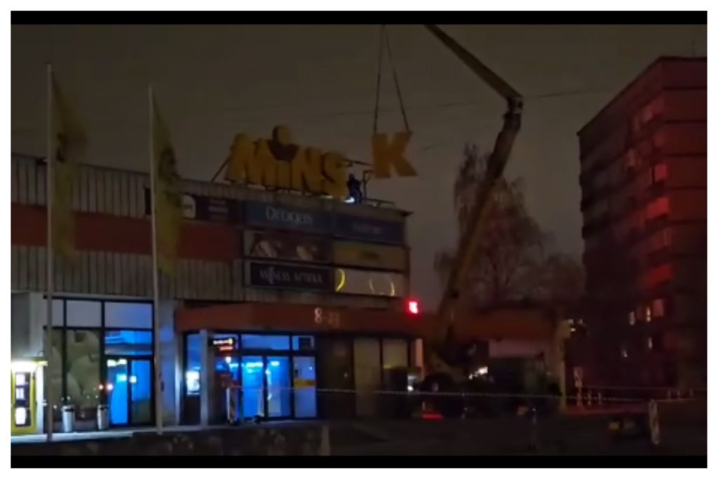 VIDEO. Leģendārās “Minskas” ēra ir noslēgusies. Nakts aizsegā pa vienam burtam tiek noņemta izkārtne 133