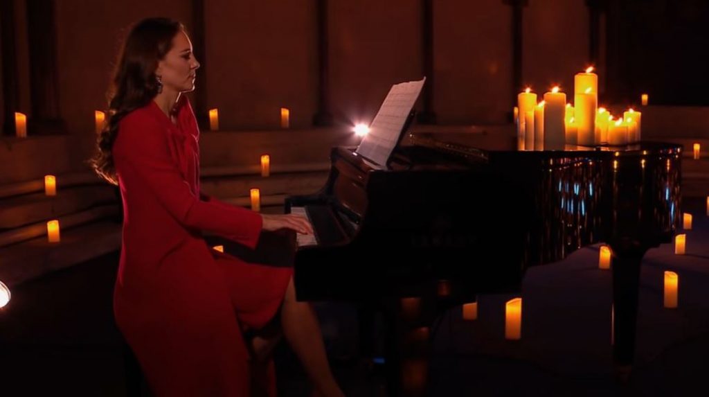 Vakardien pirms Ziemassvētku ieraksta tiešraides pārraidīšanas britu TV kanālā “ITV”, hercogiene Keita Midltone socvietnē “Instagram” publicēja dažu sekunžu īsu video – tam nebija skaņas, bet bija redzams, ka viņa apsēžas pie klavierēm.