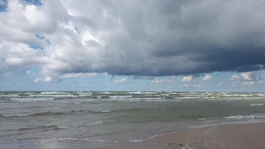 “Mūsu reģionā ieplūst aukstāka gaisa masa, bet Baltijas jūras ūdeņi ir silti – atmosfēra ir nestabila, līdz ar to veidojas ūdens stabi,” ziņu Latvijas Vides, ģeoloģijas un meteoroloģijas centrs.