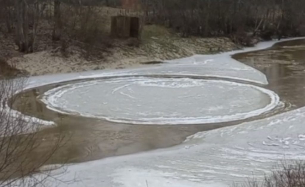 VIDEO. “Ļoti interesants skats!” Cieceres upē iemūžināts rotējošs “ledus aplis” 6