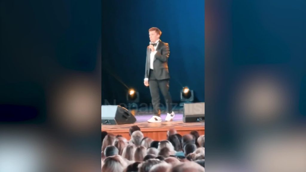 “Labvakar, dārgie draugi. Es sāku mācīties latviešu valodu, jo tagad Krievija ļoti uzmanīgi seko līdzi visam, ko saku koncertos. Tāpēc šodien es runāšu un jokošu tikai latviski.