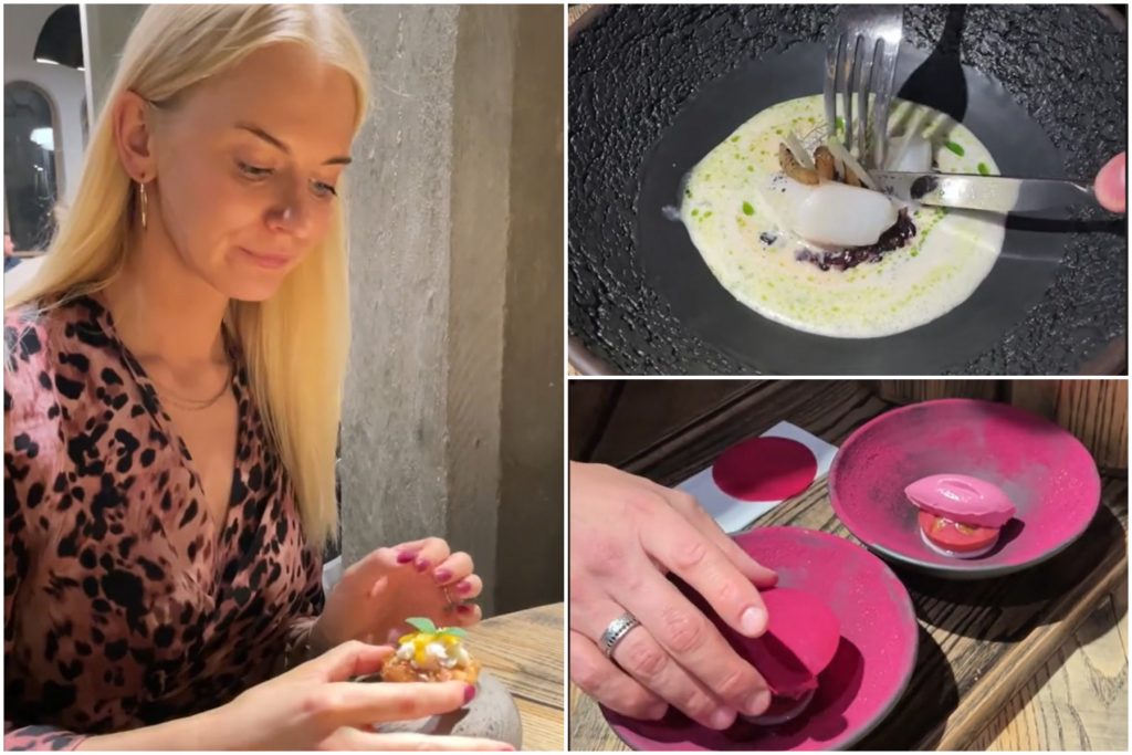 “Tā doma ir tāda – samaksā 150 eiro no personas par ēdienu, tev ir 10-kārtu vakariņas, un dzērieni tev ir jāņem atsevišķi,” viņa paskaidro, piebilstot, ka ir iespēja maltītēm pieskaņot vīna setu, bet viņa izvēlējusies ņemt atsevišķus kokteiļus.