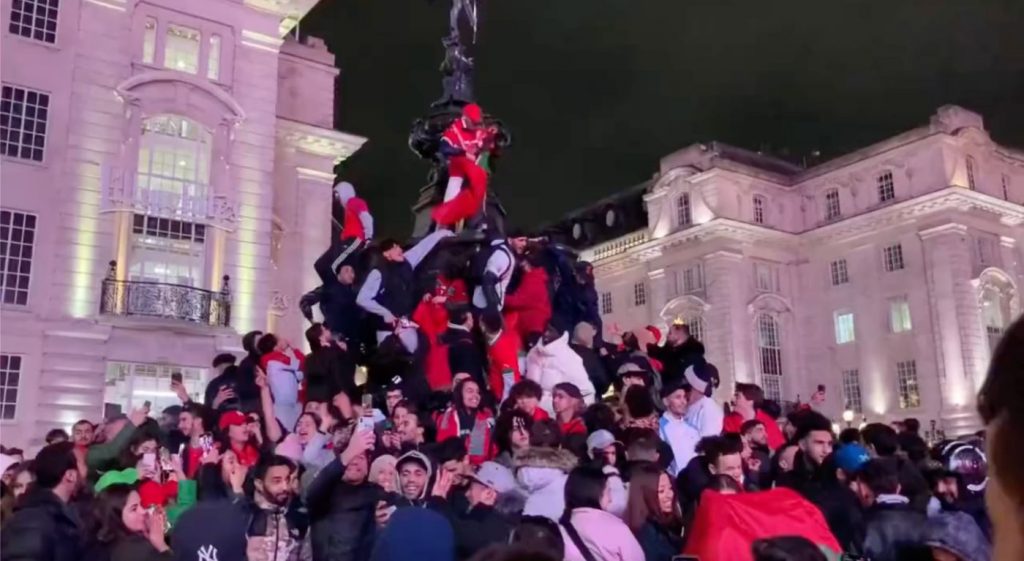 Uzreiz pēc spēles beigām Marokas futbola izlases līdzjutēji izgāja ielās, lai svinētu vēsturisko uzvaru.