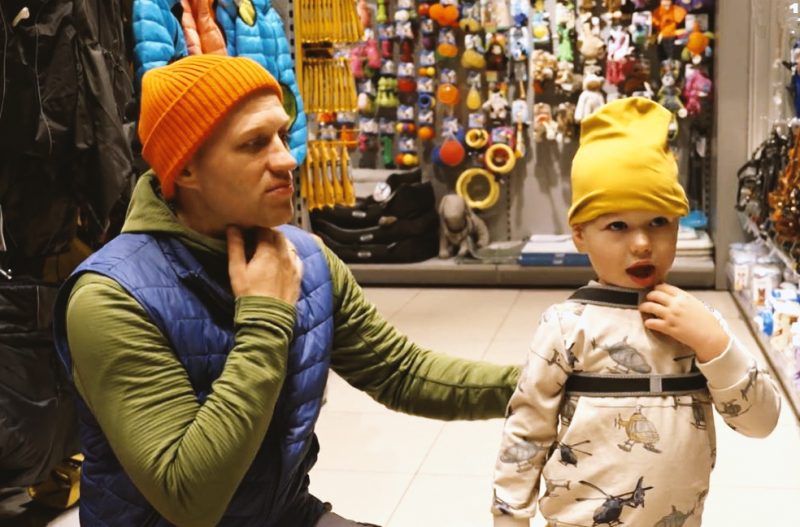 “Viņam, viņam vajag siksniņu!” – Uģis Kuģis norāda uz vecāko dēlu Tamalu. Vēlāk viņš skaidro: “Mēs brauksim uz Indiju un tur ir liels pūlis. Es esmu redzējis tādas siksniņas bērniem, bet mēs ātrumā nevaram atrast.”