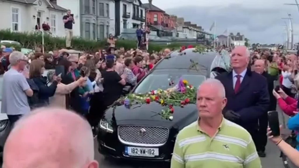 Tūkstošiem cilvēku pulcējušies piekrastes pilsētā Brejā, Īrijā, lai atvadītos no dziedātājas Šineidas O’Konoras.