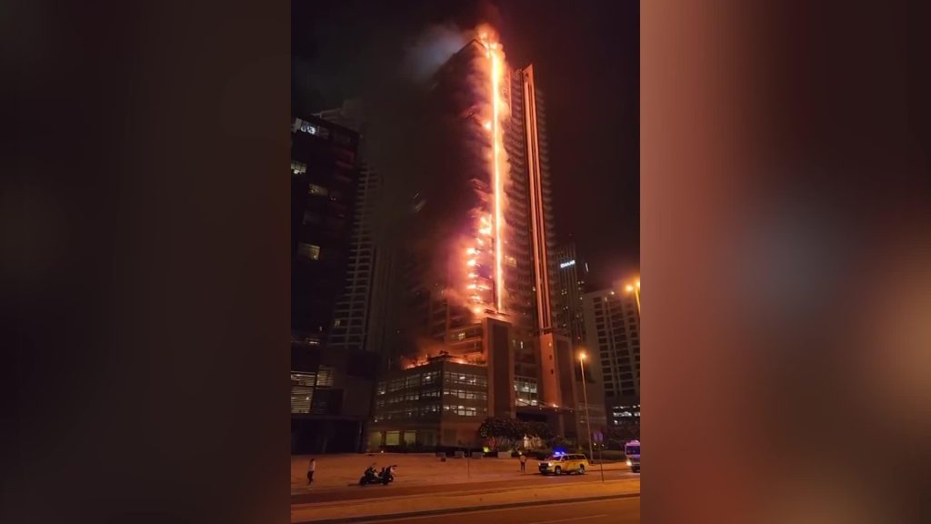 Pirmdienas rītā Dubaijā izcēlies ugunsgrēks 35 stāvu augstā ēkā netālu no pasaulē augstākās ēkas “Burj Khalifa”.