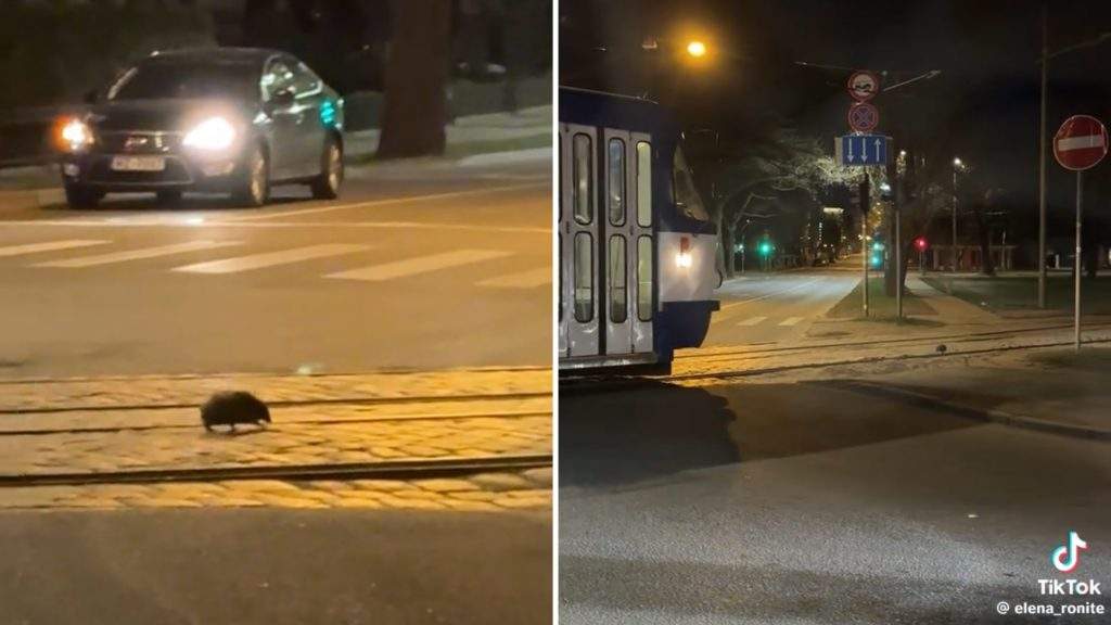 VIDEO. Sirsnīgākais skats Rīgā: tramvajs lēnām seko… ezītim 0