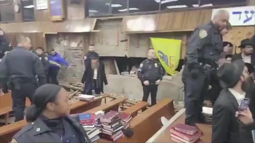 VIDEO. Ņujorkas sinagogā izcēlies mežonīgs dumpis, vairāki aizturētie. Par ko viņi plēšas? 25