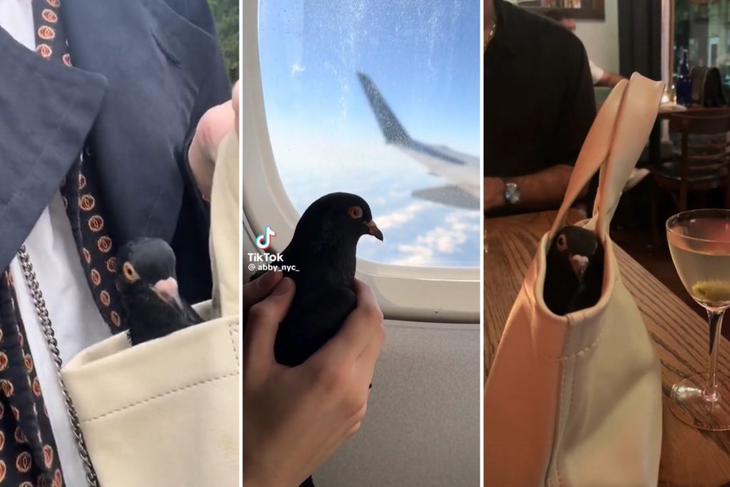 VIDEO. Ņujorkiete pastāsta, kā izglābusi balodi, iemācījusi tam izmantot tualeti, un tagad putnu nēsā līdzi somiņā visur, kur viņa dodas 2