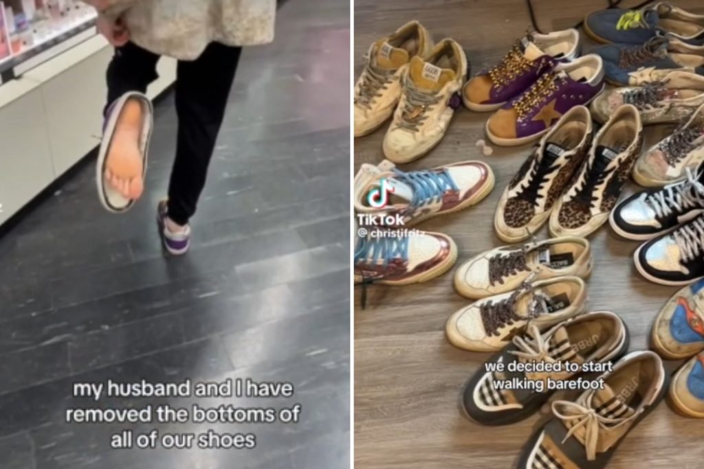 Kāda vietnes “TikTok” lietotāja stāsta, ka viņa un viņas partneris ir izgriezuši zoles visai savai apavu kolekcijai, kas vērta 20 000 ASV dolāru, lai visur varētu staigāt basām kājām.