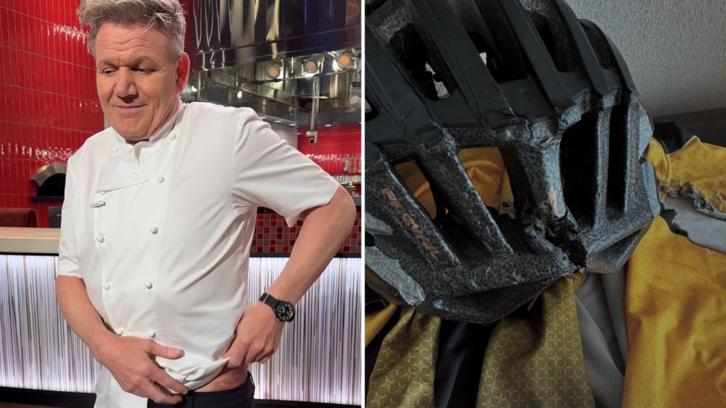 VIDEO. Pasaulslavenais šefpavārs Gordons Remzijs priecājas, ka palicis dzīvs, un demonstrē masīvu zilumu, ko guvis pēc smaga kritiena no velosipēda 10