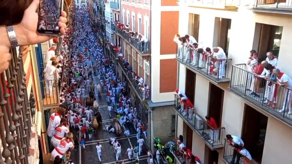 VIDEO. Pēc trīs gadu pauzes Pamplonā atgriežas buļļu skrējiens 1