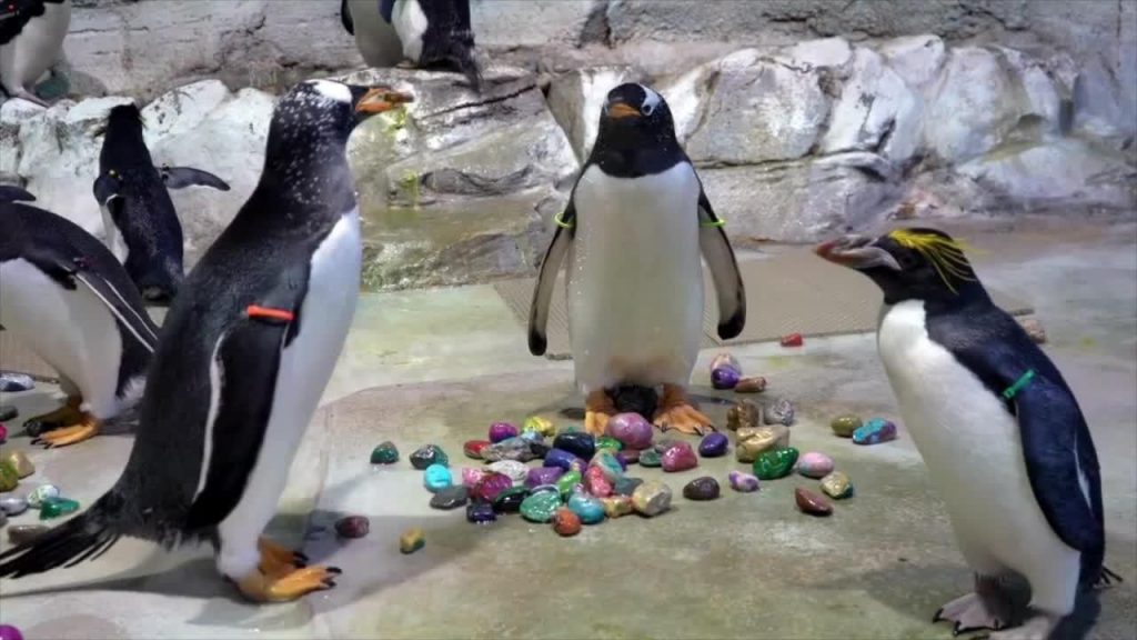 Nupat ASV Detroitas Zoodārzā uzņemts video, kurā redzams, kā pingvīni izlasa ideālos oļus, lai uzsāktu ligzdošanu kopā ar savām partnerēm.