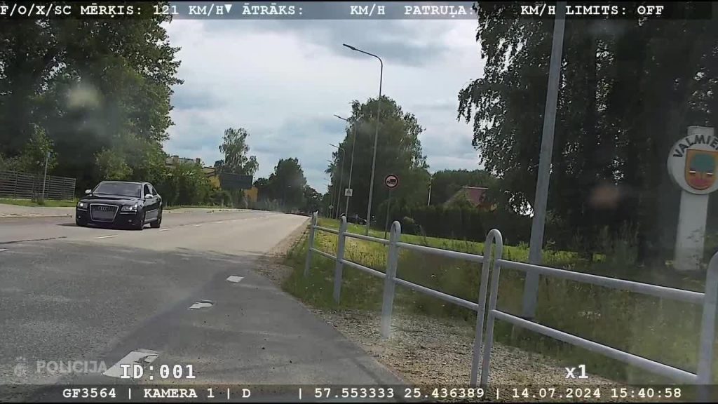 Valsts policijas Vidzemes reģiona Rietumvidzemes iecirkņa reaģēšanas nodaļas amatpersonas vakar, 14. jūlijā, pulksten 15.40, pildot dienesta pienākumus, Valmierā, uz autoceļa Valmiera – Rūjiena – Igaunijas robeža (Unguriņi) fiksēja kādu steidzīgu “Audi S8” markas automašīnu, kas pārvietojās ar ātrumu 159 kilometri stundā, apdzīvotā vietā, kur atļautais braukšanas ātrums ir 50 kilometri stundā. Pārbaudot automašīnas vadītāju, policija konstatēja, ka pie “Audi S8” stūres sēdies kāds 1982. gadā dzimis vīrietis.