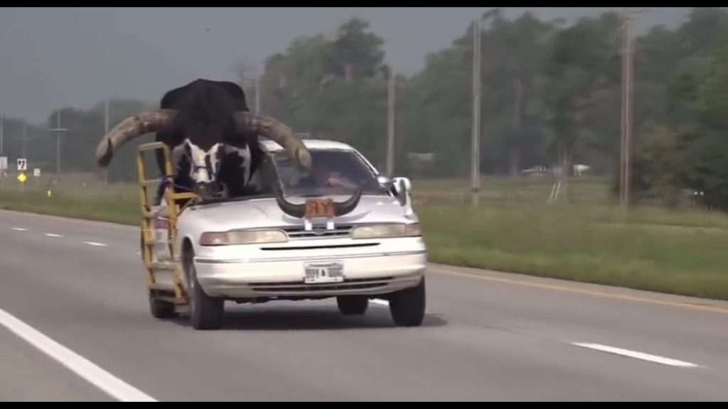 VIDEO. Policija aptur autovadītāju, kuram pasažiera vietā stāv milzīgs bullis 15
