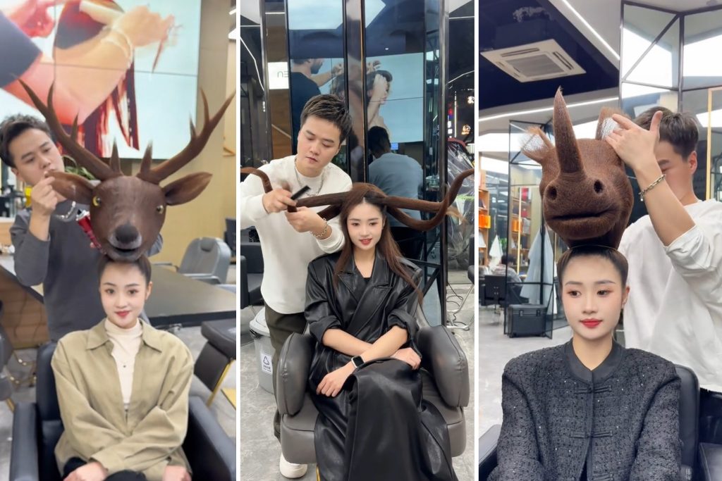 Matu stilists Džao Jinings savā salonā, kas atrodas Džedzjanā, uz savas asistentes Dzju Eramas galvas izveidojis sarežģītus dzīvnieku vaibstus.