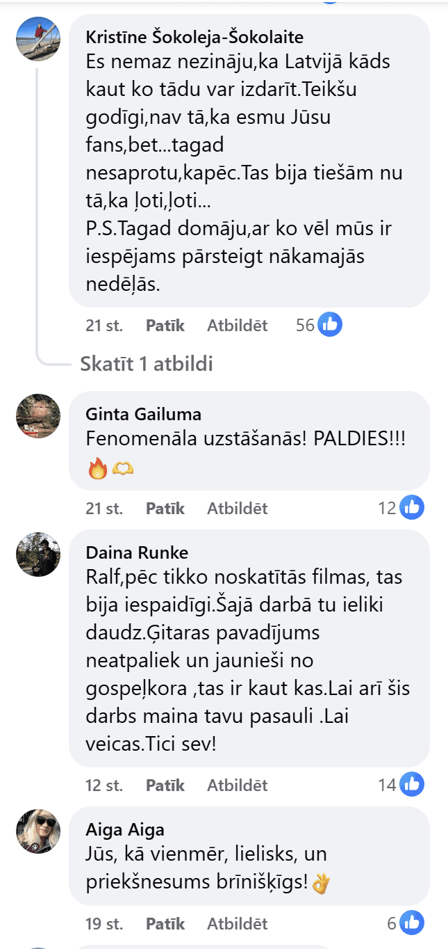 Uzstāšanās vakarā Ralfs raksta: ““Mamāāā, ū-u-u-ū!” Neskaitāmas reizes dziedāts ar draugiem kā filmā “Wayne’s World”, šovakar kopā ar Rīgas Doma kora skolas gospeļkori. Paldies, un noliecu galvu Fredija un skatītāju priekšā! Ja no manis karaoke, tad tikai “Bohemian Rhapsody”. Sirsnīgs paldies par labajām ziņām! Priecāšos par atbalstu arī balsojumā!”