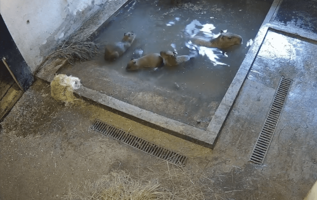 Kapibaru saime – pieaugušie Oskars, Tindra un Truse – ar mazuļiem sadzīvo lieliski. Vecāki par atvasēm rūpējas, ļauj tām droši apgūt apkārtējo vidi un soli pa solim iepazīt pasauli. Kā norāda Rīgas ZOO, mazuļi šobrīd ir tieši tādi, kādiem jābūt šajā vecuma posmā – kustīgi, zinātkāri un pilni enerģijas.