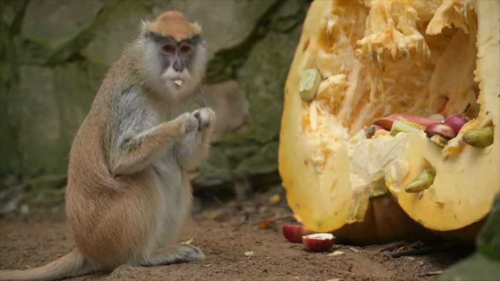VIDEO. Rīgas Zoodārza iemītnieki mielojas ar Latvijas lielāko ķirbi 6