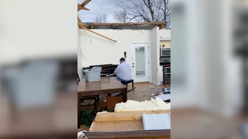 VIDEO. Saldās skumjas: vīrietis spēlē klavieres savā vētras izpostītajā mājā 3