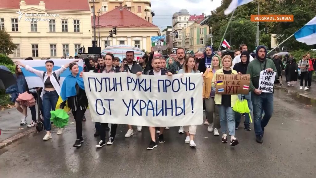 Aizvadītajā nedēļas nogalē Serbijas galvaspilsētā Belgradā desmitiem protestētāju devās gājienā, lai paustu atbalstu Ukrainai pēc tam, kad Krievijas prezidents Vladimirs Putins paziņoja par četru daļēji okupēto Ukrainas teritoriju uzņemšanu Krievijas sastāvā, balstoties uz iepriekš notikušajiem “referendumiem”.