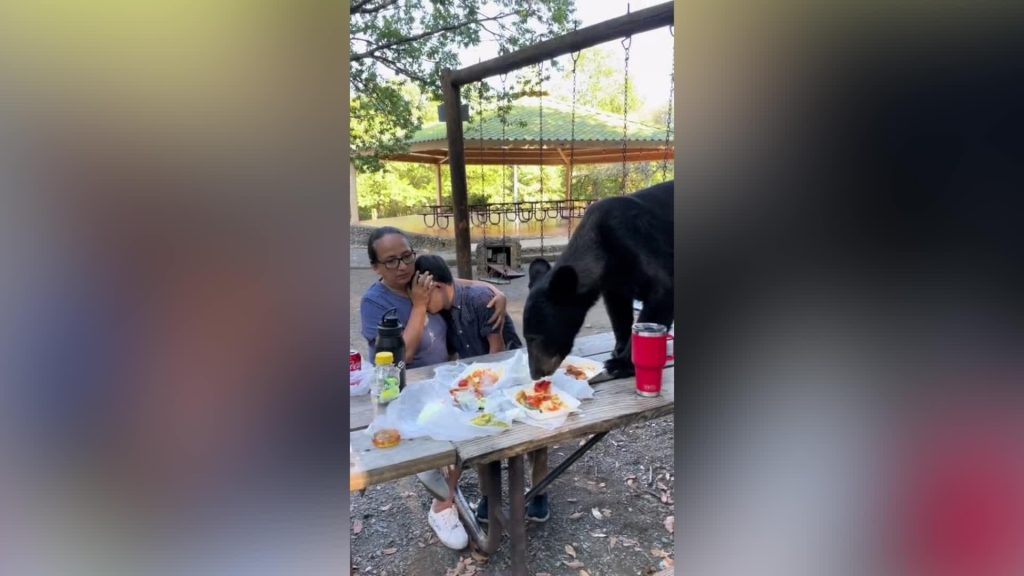 VIDEO. Sieviete sargā dēlu no melnā lāča, kurš izjauc dzimšanas dienas pikniku, uzkāpjot uz galda un notiesājot visu mielastu 22