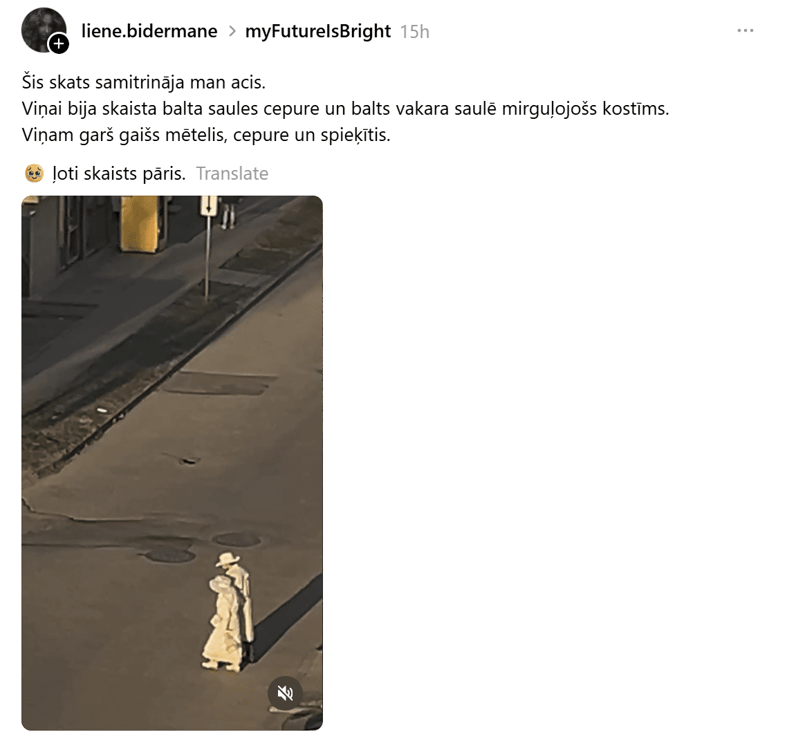 Kāda cita komentētāja piebilst: “Esmu manījusi šo pāri Vecrīgā. Nevarēju atraut skatu no viņiem un smaids manā sejā ilgi vēl palika, lai gan viņi bija jau garām aizgājuši sen.”
