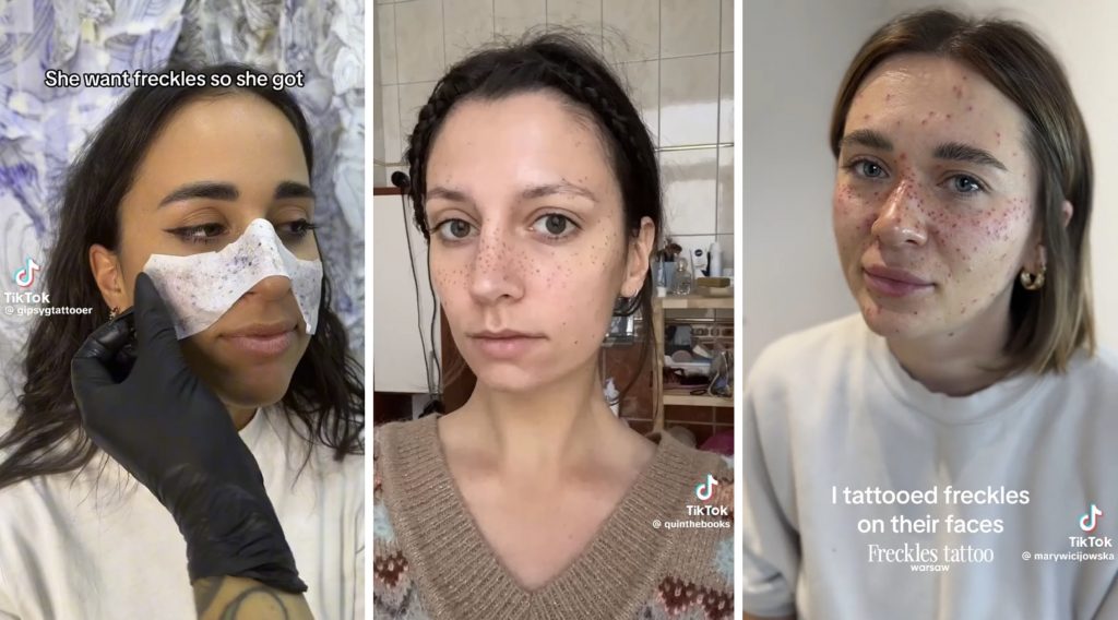 Pēdējā laikā sociālajos tīklos arvien biežāk redzami video, kuros parādīts, kā sievietes guļas uz kušetes un ļaujas tetovētāju vieglajai rokai, lai tiktu pie “mūžīgiem” vasaras raibumiem.