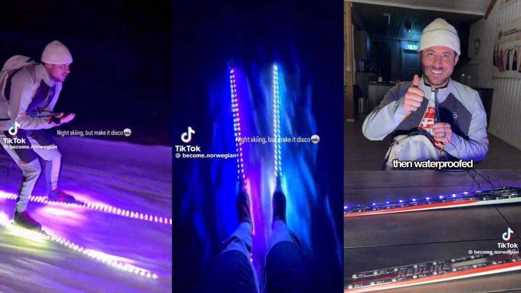 Kāds norvēģu slēpotājs sociālajā vietnē “TikTok” pārsteidzis tūkstošiem skatītāju, demonstrējot neparastu ziemas eksperimentu – disko slēpes ar LED apgaismojumu, kas klasisko distanču slēpošanu pārvērš par fantastisku gaismas šovu.