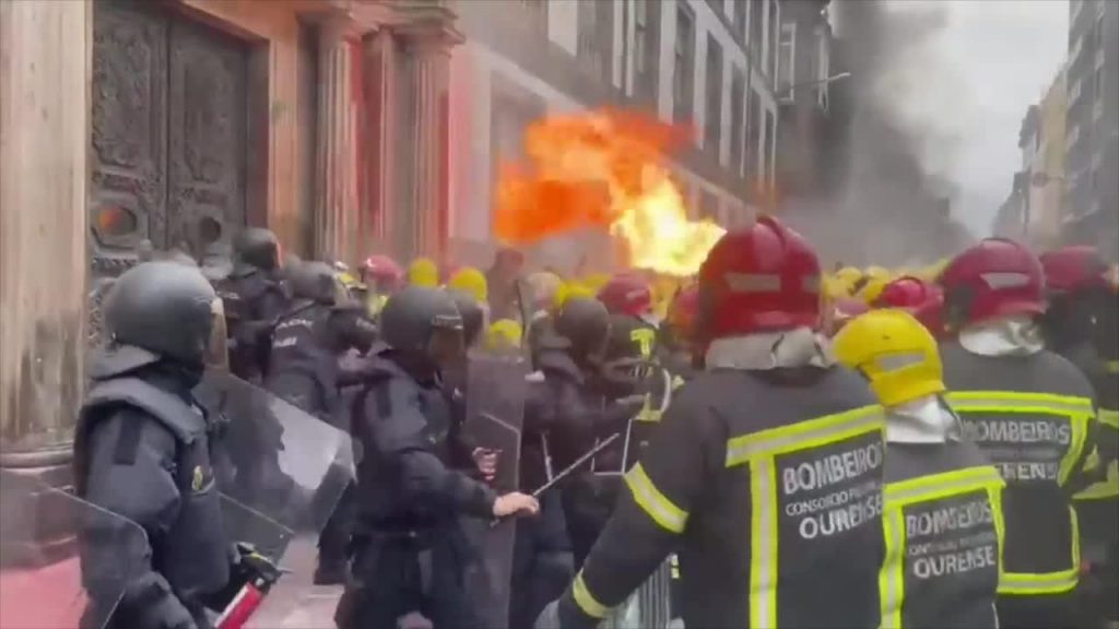 Video redzamā konfrontācija ir ugunsdzēsēju protesta dienas kulminācija, kuri, saskaņā ar policijas avotiem, centās iekļūt Orenses provinces padomes ēkā. Saniknotie ugunsdzēsēji stājās pretī policistiem, metājās ar dažādiem priekšmetiem un pat pūta uguns liesmas kārtības sargu virzienā.