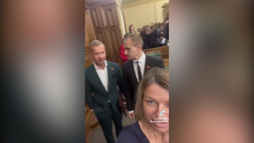 Tur redzams Glorijas Grevcovas zvērests latgaliski un pēc tā sekojošais TikTok ieraksts, kurā skan fona mūzika krievu valodā.